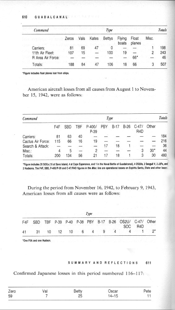 The total cost of the Guadalcanal campaign to the American ground combat forces was 1,598 officers and men killed, 1,152 of them Marines. The wounded totaled 4,709, and 2,799 of these were Marines. Marine aviation casualties were 147 killed and 127 wounded. The Japanese in their turn lost close to 25,000 men on Guadalcanal, about half of whom were killed in action. The rest succumbed to illness, wounds, and starvation At sea, the comparative losses were about equal, with each side losing about the same number of fighting ships. The enemy loss of 2 battleships, 3 carriers, 12 cruisers, and 25 destroyers, was irreplaceable. The Allied ships losses, though costly, were not fatal; in essence, all ships lost were replaced. In the air, at least 600 Japanese planes were shot down; even more costly was the death of 2,300 experienced pilots and aircrewmen. The Allied plane losses were less than half the enemy's number and the pilot and aircrew losses substantially lower.